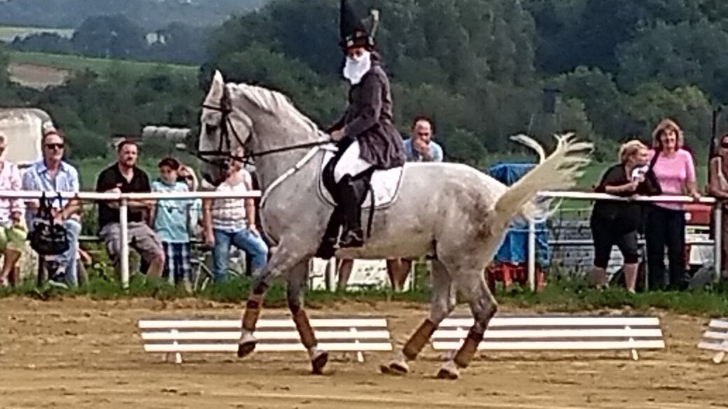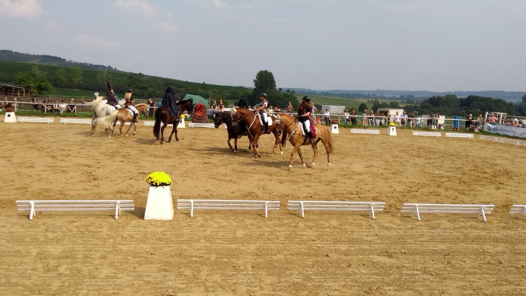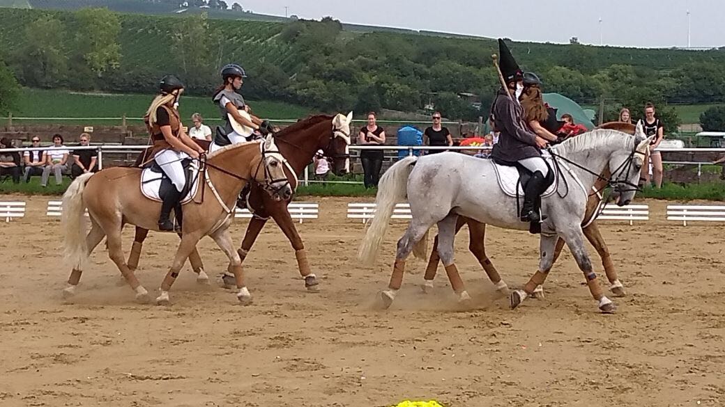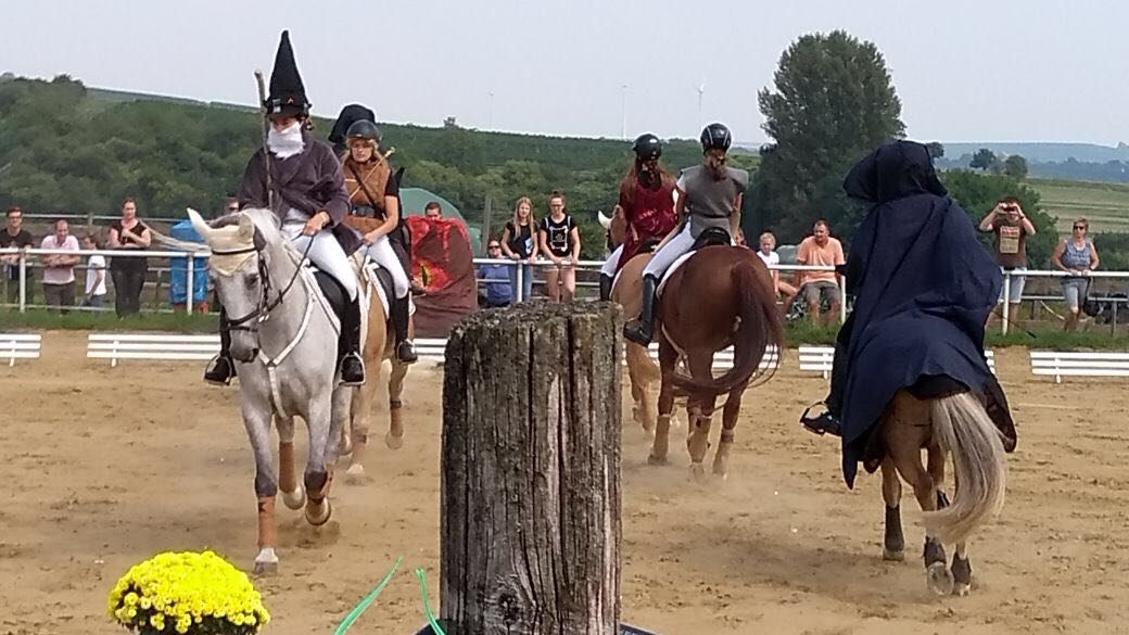 Nach einer entspannten Mittagspause mit Pommes und Würstchen startete die Quadrille. Unser diesjähriges Showbild „Herr der Ringe“ kam ebenfalls sehr gut an und wir machten in der Jurywertung den zweiten Platz. Für die Publikumswertung waren wir wohl etwas zu leise, aber mit dem dritten Platz waren wir sehr zufrieden (nächstes Jahr werden aber Pfeifen und Tröten mitgenommen! ;)).