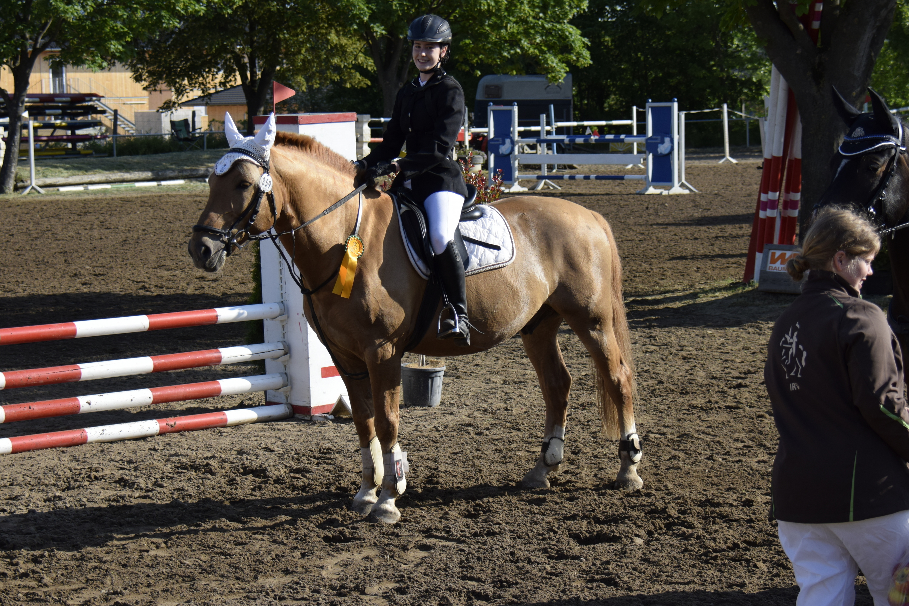 Erfreuliche Ergebnisse für den IRV gab es auch für die jungen Reiterinnen aus dem Springlager: Im Stilspringen der Klasse A* Weg und Zeit belegte Michelle Tadic auf Cashflow mit der Note 7,7 den zweiten Platz. Paula Schneiß siegte mit Ranhia und der Traumnote 8,0 souverän im Stilspringwettbewerb und belegte im Standard-Spring-Wettbewerb Platz Drei. Siegerin in dieser Prüfung war Melanie Victoria Bockius auf Vereinspferd Goliath mit der Note 7,5, eine sehr beachtliche Leistung bei ihrem ersten Turnierstart. Über den vierten Platz freute sich Summer Henkel auf der bereits in der Dressur erfolgreichen Ponyscheckstute Miss Moneypenny.