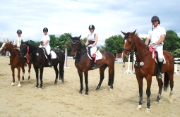 Yasemin Cin die weiße Schleife (3. Platz) in Dressur LK 0 entgegennehmen. Vorjahressiegerin (LK6) Jasmin Schweikhard, dieses Jahr LK 5, verpasste mit Vancouver in der Meisterschaft nur ganz knapp den ersehnten Treppchenplatz und landete nach 2 Platzierungen in den beiden A-Dressuren auf Platz 4.