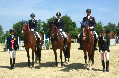 Thomas Stöckl auf Workout, Sina Fenner auf Ranhia, Carolin Häffner auf Arrivée und Lisa Isinger mit ihrem Pferd Golani erreichten eine Wertnote von 7,0 den 5. Platz in der Dressurprüfung der Klasse A.