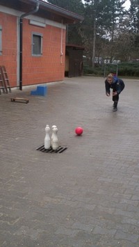 Beim Ausräumen des Kegelheims neben unserer Reitanlage hatten wir alle unglaublich viel Spaß, denn außer Tonnen von Geschirr, Dekorationen und Möbeln fanden wir auch noch etwas zum Spielen: Kegel!