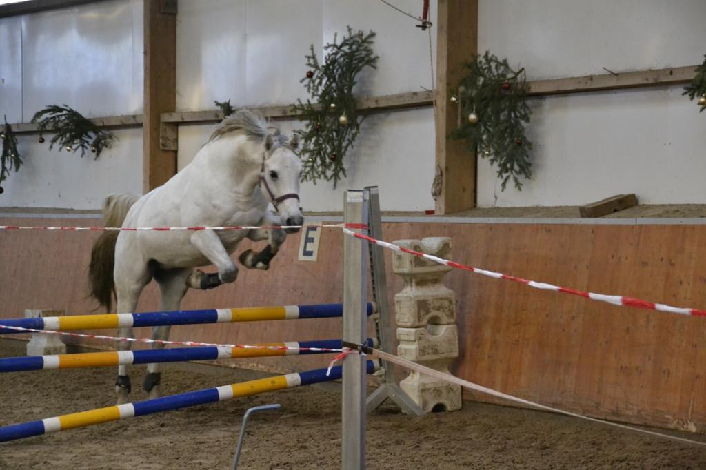 Gemeinsam wurde eine Reihe aufgebaut und bei jedem Pferd, je nach dessen Bedürfnis, variiert. Alle teilnehmenden Pferde und ihre Besitzer freuten sich über die Abwechslung bei dem eisigen Wetter und der etwas verfrühte „Sprung ins neue Jahr“ ist allen geglückt, sodass 2020 nun kommen kann.