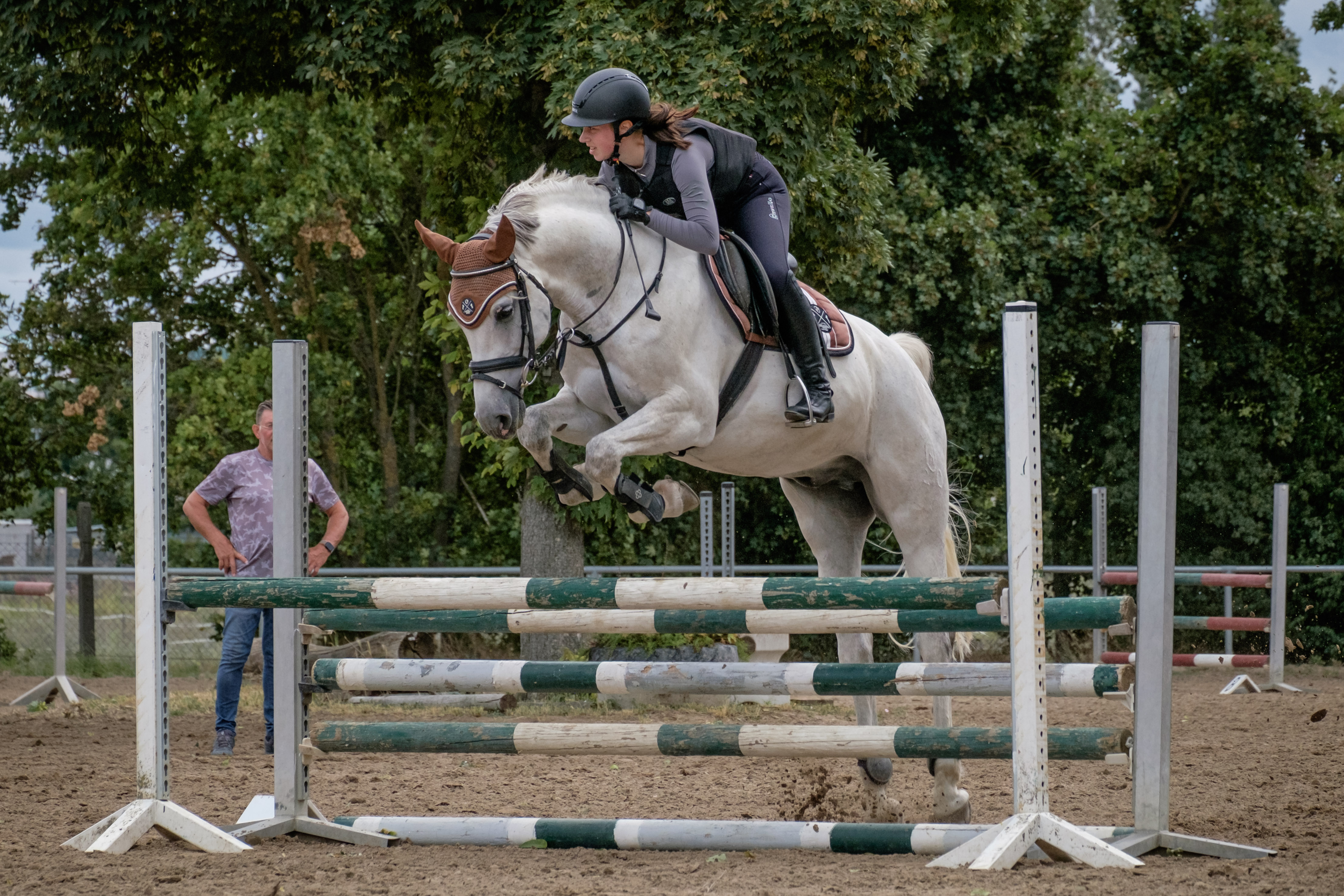 Zu dem Dressurlehrgang der am 26.06. und am 27.06. auf der der Anlage des Ingelheimer Reitervereins stattfand, wurde am 28.06. auch noch ein Springlehrgang unter der Leitung von Sepp Gemein veranstaltet.